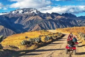 Quad bikes, also known as ATVs or quads, are a popular way to explore the area around Maras Moray in the Sacred Valley of the Incas.